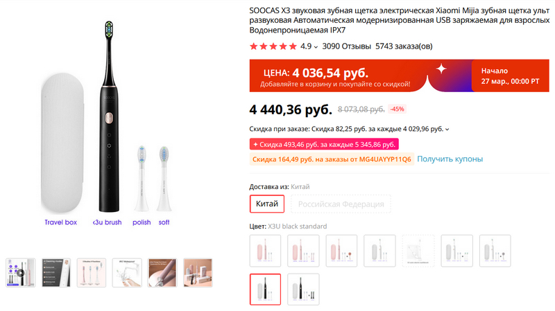Вне конкуренции для меня вот эта зубная щетка Xiaomi Soocas S3. Она мне нравится больше, чем дорогущая Philips. Данная щетка не слишком долговечная - у меня обычно помирает где-то через год-полтора использования, но за такие деньги я просто заказываю новую и не парюсь.