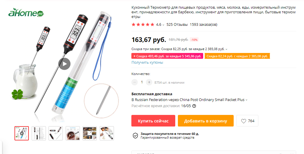 Кухонный термометр для пищевых продуктов. Можно втыкать во все подряд, мясо, птицу, молоко…