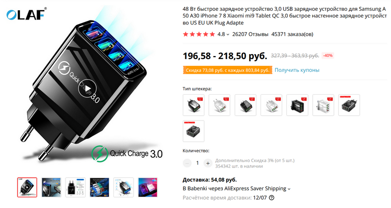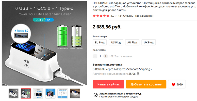 Алекс, эту четырехпортовую зарядку я бы не рекомендовал. Она продается под разными брендами. Это OEM- производство, любая небольшая фирма может заказать свой логотип на корпусе зарядки. Кроме того, если там и есть быстрая зарядка, то она очень быстро выходит из строя. Остальные порты не лучше. Чаще она совсем выходит из строя через месяц-другой.