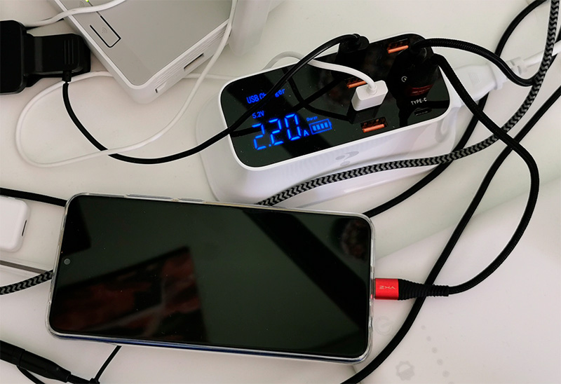 Четырехпортовый адаптер для зарядки. Есть порт с поддержкой QC 3.0 до 48 Ватт.