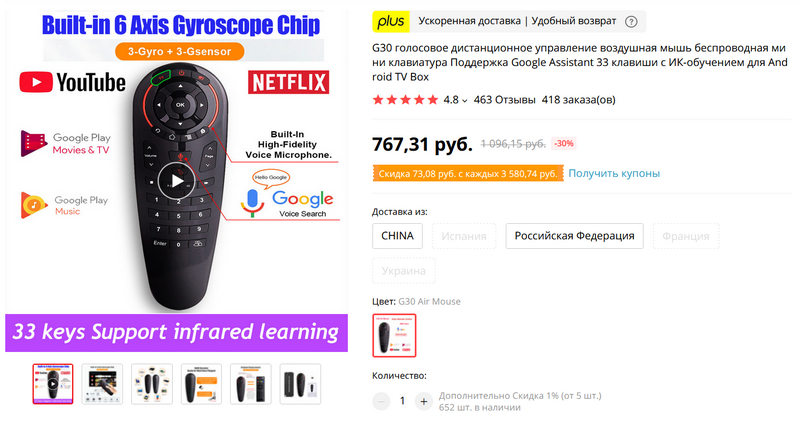 Одна из самых продвинутых аэромышей из всего, что я встречал. 6-осевой гироскоп, голосовое управление, есть режим ИК-обучения. Заказал себе: для всяких андроидных ТВ-приставок - самое то что надо, значительно удобнее обычного пульта.