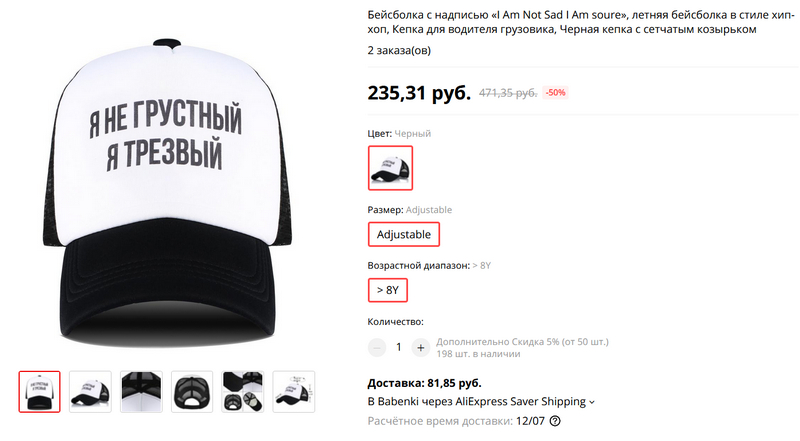 Сетчатая бейсболка с жизненной надписью. Регулируемая.