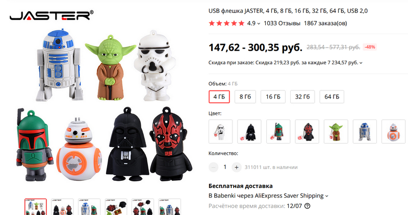 Мне дарили флэшку в виде Дарта Вейдера на 64Гб. По прямому назначению я ее использовать так и не смог: глючит страшно. Так что осторожно.