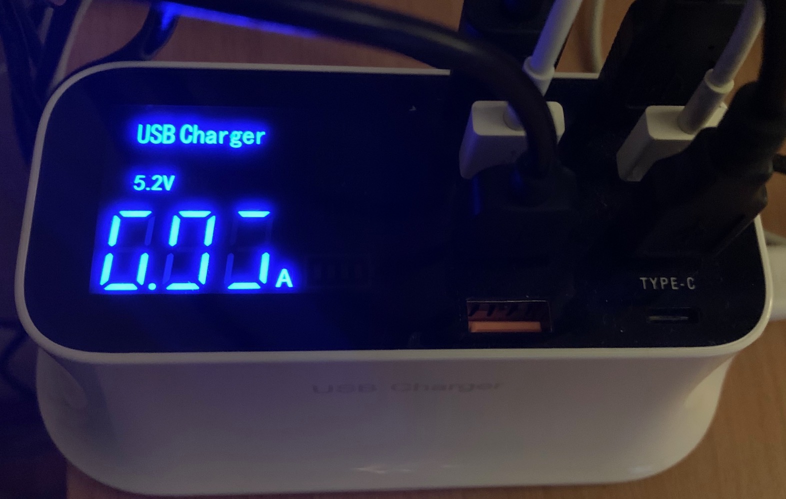 Про этот зарядный хаб я уже писал - наверное, с год назад. Восемь портов, среди которых отдельный порт с поддержкой быстрой зарядки QC 3.0 и порт Type-C, на дисплее показывается ток зарядки каждого из подключенных устройств (по очереди). Я его год использую, очень удобно.