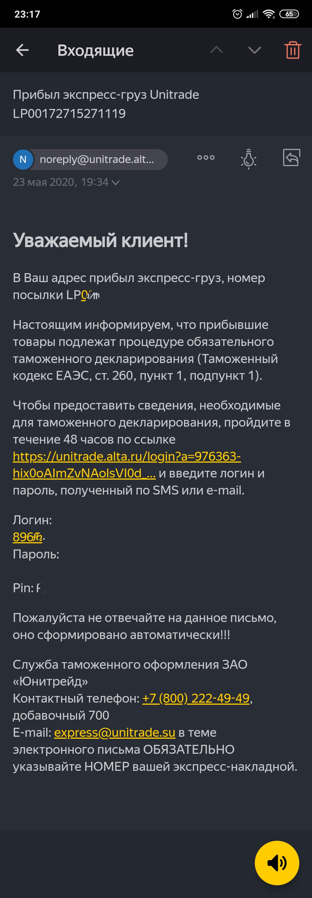 Может быть еще смешнее - один товар поступил на таможню в Москве, а другой - в Новосибирске.