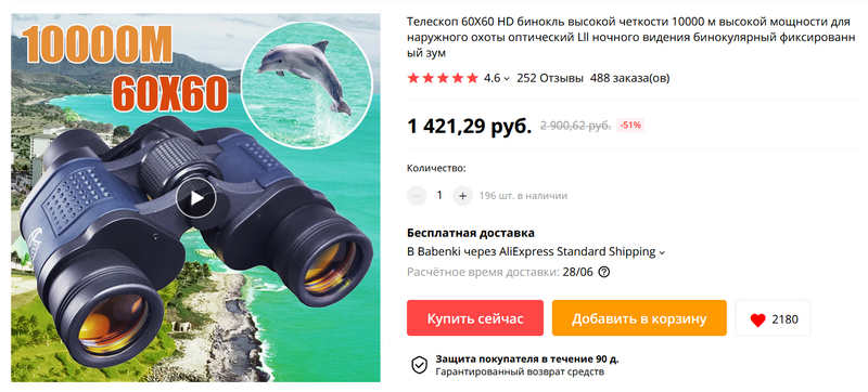 60-кратный бинокль высокой четкости с режимом ночного видения.