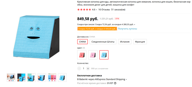Забавная копилка. Когда суешь ей монетку, копилка монетку сначала жует, потом проглатывает.