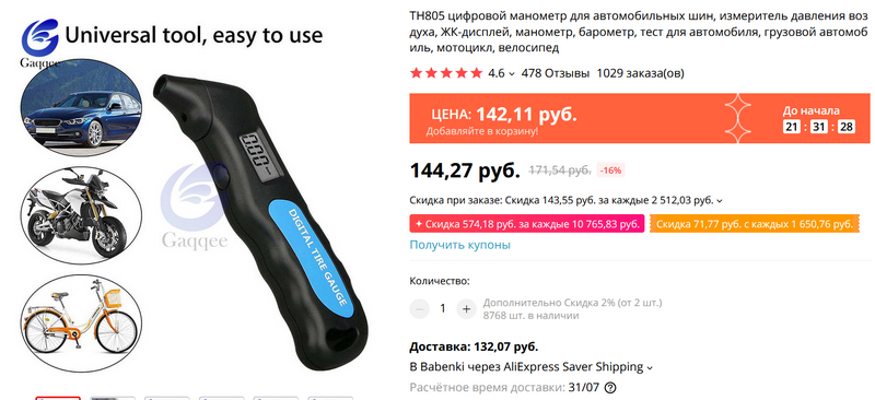 Алекс, по поводу манометра для измерения давления в шинах - ото вот что по ссылке оно может и удобное, но оно никак не манометр а черти что и с боку бантик. Эти поделки за три копейки имеют очень большую погрешность. Более или менее нормальный манометр это Hella механический. Но там да, ценник совсем другой.
