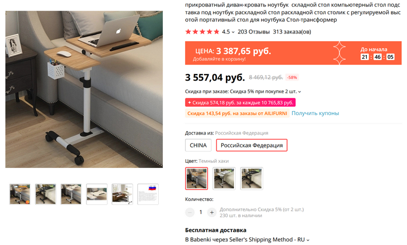 Давно себе искал удобный прикроватный столик для ноутбука - сериалы в кровати смотреть. Я именно такую модель разыскивал - она долгое время была недоступна. Сейчас появилась, причем есть еще и поставка с российского склада.