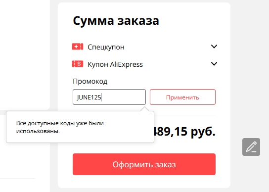 JUNE125 - скидка 125 рублей при покупке от 1000 рублей;