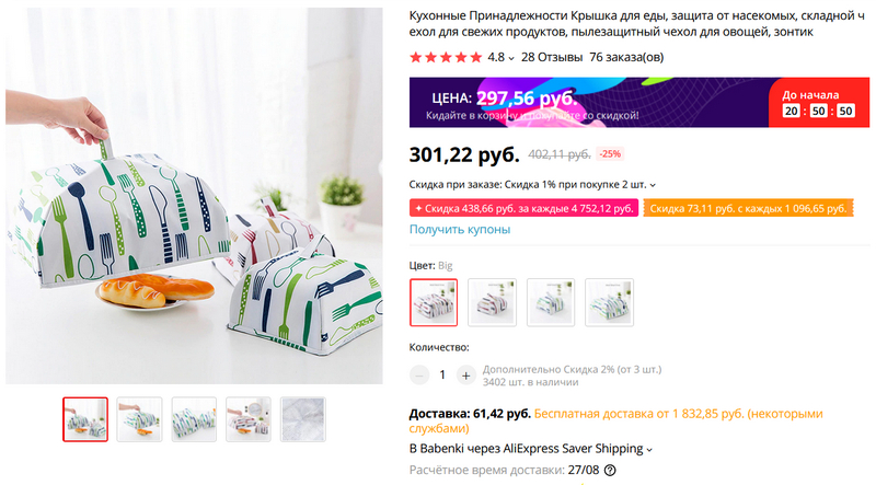 Полезная штука для всяких дач (да и в квартирах также может использоваться) - складные крышки для еды. Прежде всего, для защиты от мух и всяких других летающих инсектов. Мы такие штуки постоянно используем, когда обедаем/ужинаем на улице.