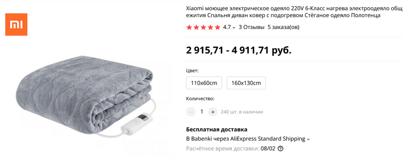 Электроодеяло (оно же греющий плед) от Xiaomi. Есть двух размеров, поддерживает шесть температурных режимов, можно стирать деликатной стиркой. Как раз для длинных зимних вечеров.