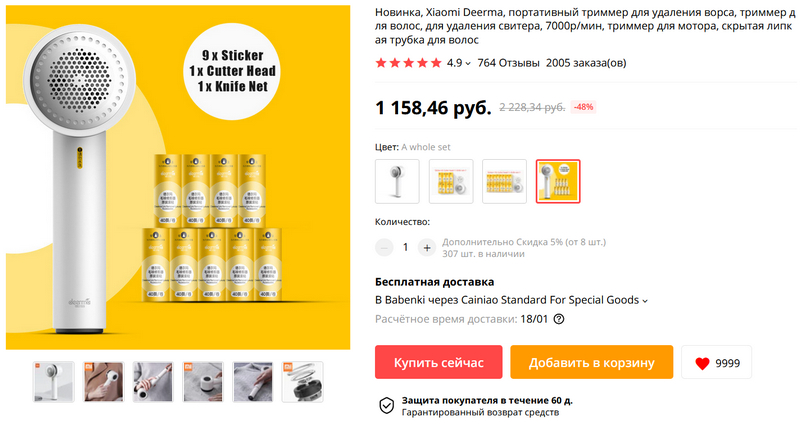 Триммер от Xiaomi для очистки ворса с одежды. Отзывы хорошие. Внутри в ручке находится выдвигаемая липкая трубка для волос. За 1158 рублей - триммер с дополнительными 9 липкими трубками.