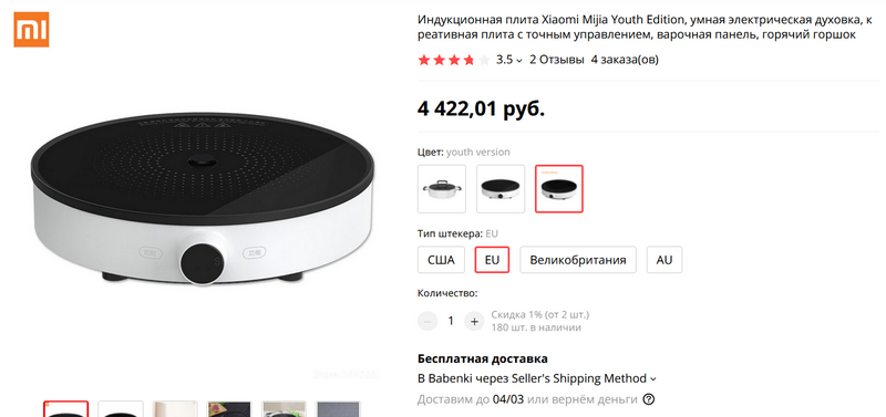 Очень компактная индукционная плитка от Xiaomi. Полезная штука для кухни, когда конфорок не хватает, также незаменимая вещь для всяких дач. И тут же можно для нее заказать кастрюлю с крышкой точно под размер.