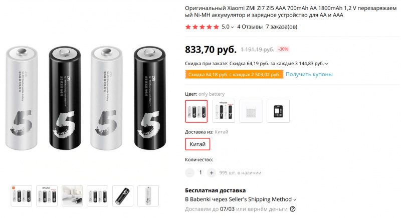 Оригинальные перезаряжаемые аккумуляторы от Xiaomi ZMI (ZMI делает все внешние аккумуляторы для Xiaomi, производитель очень достойный и качественный) - на 700 мАч и 1800 мАч. Также можно купить с их зарядным устройством. Заказал себе на 1800 мАч, давно собирался заменить старый комплект, который уже плохо тянет.