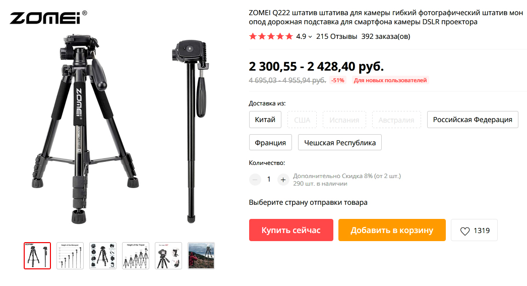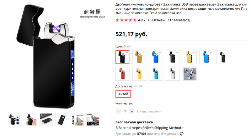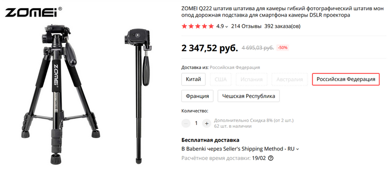 Да, доставку из РФ не выбирайте, там стоимость доставки будет сумасшедшая. Из Китая - бесплатно.