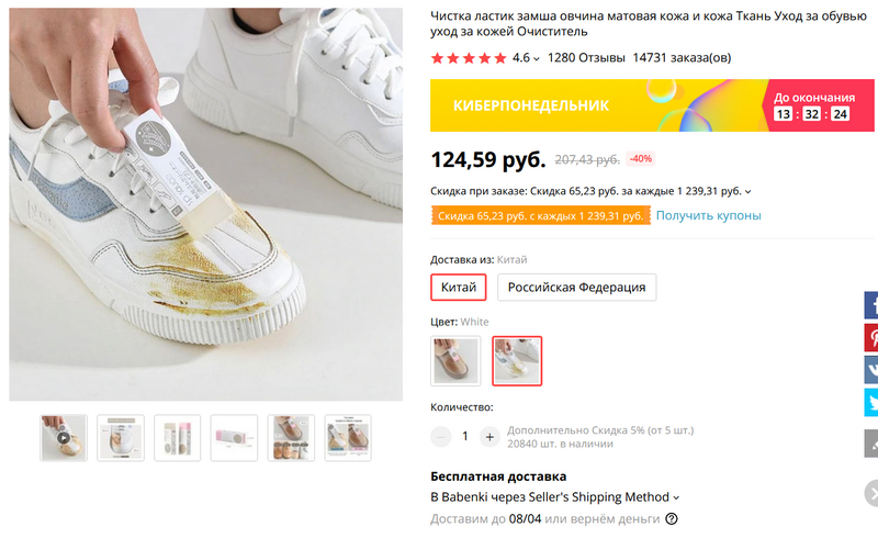 Любопытная штука - ластик для очистки обуви (меламиновая губка). Пользуется большой популярностью, отзывы хорошие, 15 тысяч заказов. Мне в Испании как-то неактуально, если кто будет заказывать - поделитесь потом впечатлениями, плиз.