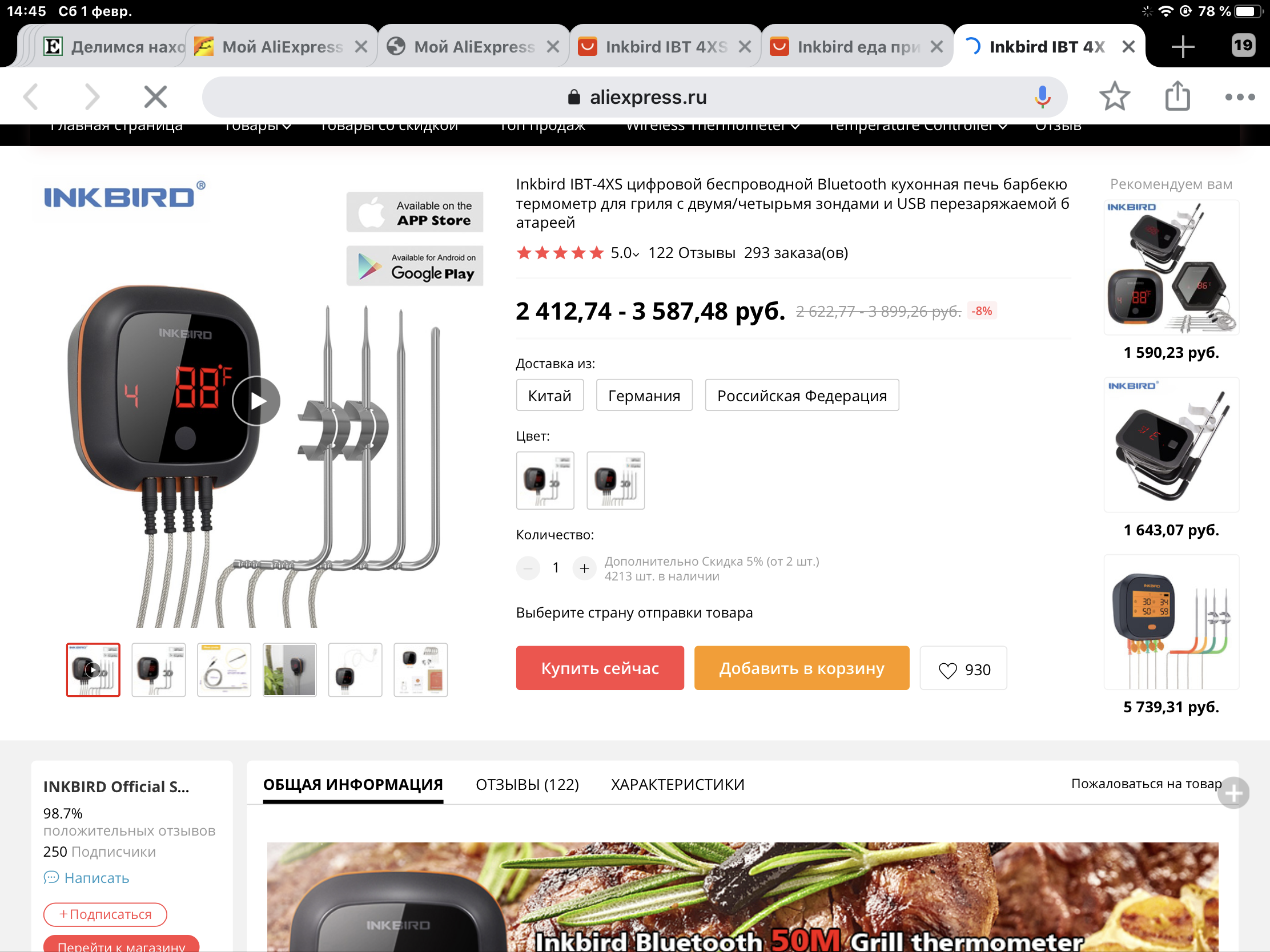 Кухонный термометр с ЖК-дисплеем за недорого.