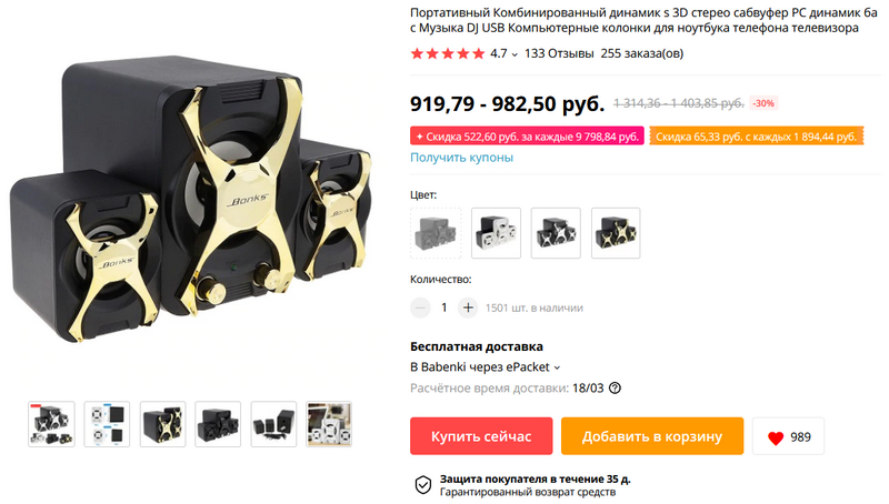 Хвалили вот эти стерео-колонки с сабвуфером. Два по 3 Вт и сабвуфер 5 Вт. Заказал, послушаем.