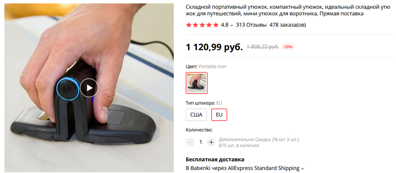 Вот такую штуку я давно искал для поездок - складной портативный мини-утюжок. У меня есть миниутюг для поездок, но он заметно больше, и я его редко с собой беру. А эта штука места почти не занимает, а рубашку в гостинице с ее помощью прогладить можно.