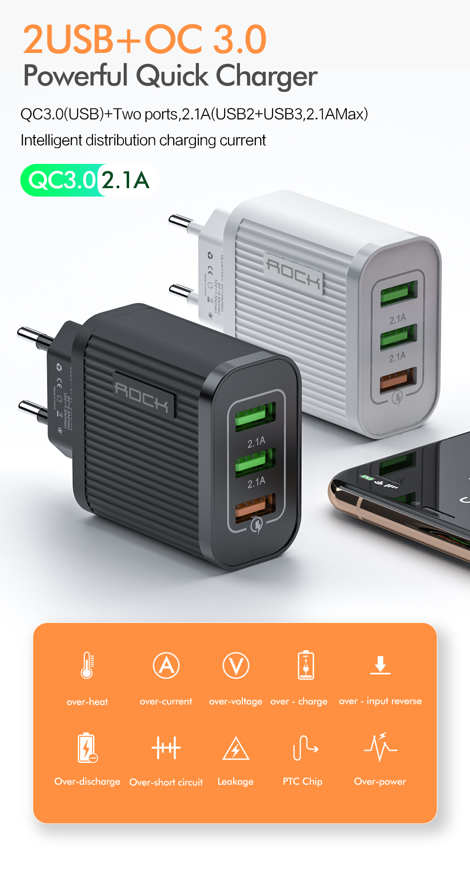 Зарядное устройство для мобильного телефона на 3 порта, включая быструю зарядку.