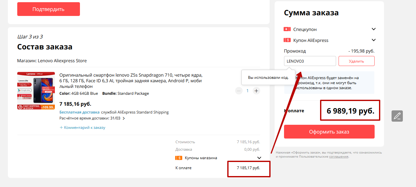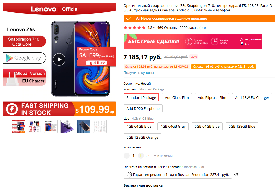- Скидка $4 на смартфон Lenovo Z5S при заказе от $99 - SALE99