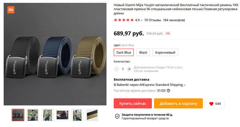 Тактический ремень от Xiaomi - трех цветов. Заказал несколько штук для джинсов - мне как раз такой вариант застежки нравится больше всего, не нужно дырки сверлить.