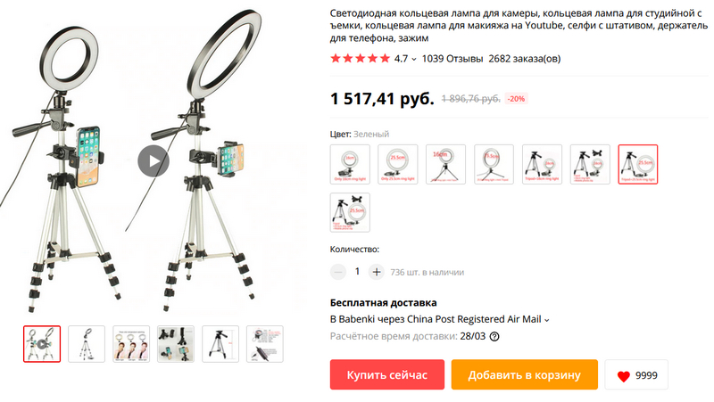 Светодиодные лампы 5 Вт для съемки с управлением с пульта (регулировка световой температуры, яркости) - двух размеров: 16 и 25 см. Также к лампе можно взять как небольшой трипод, так и штатив с дополнительным креплением под смартфон. Взял себе полный комплект со штативом и держателем - видео на смартфон снимать.