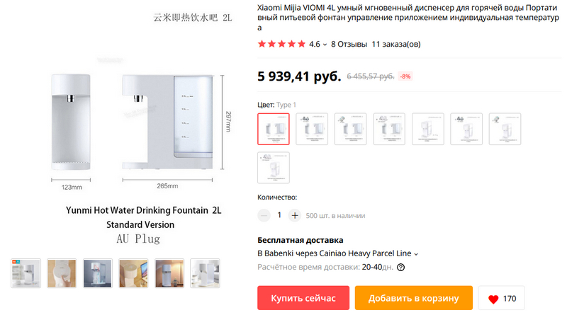 Мгновенный диспенсер от Xiaomi - чтобы горячая вода нужной температуры (температуру здесь можно выбирать) всегда была под рукой. Есть версия на 2 литра (это скорее для одного человека), есть версия на 4 литра (это на семью).