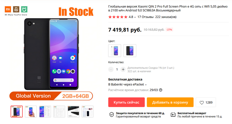 Заказал поизучать любопытный бюджетный маленький смартфон Xiaomi QIN 2 Pro - он выпущен в конце прошлого года, я о нем читал. Пятидюймовый, в форм-факторе стодолларовой купюры (вытянутый), при этом полноценный андроидный телефон на Android 9 Go edition. Глобальная версия, кириллицу поддерживает. Первые обзоры были вполне благожелательные, писали, что за такие деньги вариант вполне достойный.