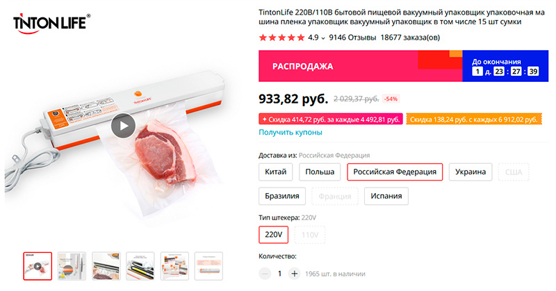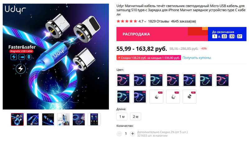 Дополнительно дают спецкупон на 138р. или $2. Если вы еще не знаете как пользоваться спецкупонами и как они работают с другими скидками почитайте этот материал на сайте Алиэкспресса
