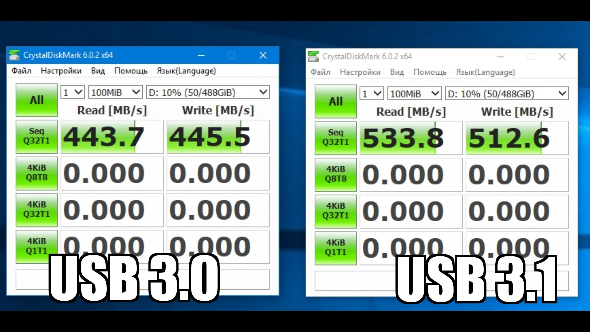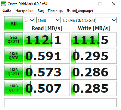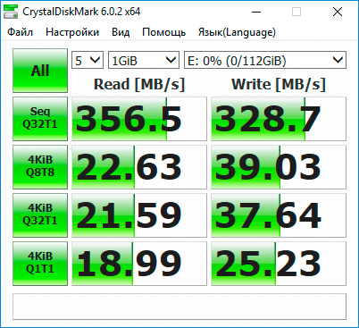 Но меня во всем этом прежде всего интересовало быстродействие. Подключил, измерил с помощью программы Crystall DiskMark.
