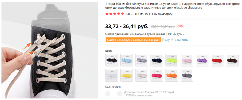 В недавней заметке "Наконец-то решена проблема завязывания шнурков!" я писал об эластичных шнурках, продающихся в России, с помощью которых я решил свои проблемы с заязыванием шнурков кроссовок. В комментариях мне там дали ссылку на аналогичные эластичные шнурки с креплением на Ali, которые реально стоят две копейки - 35 рублей пара. Ну и я, разумеется, сразу их заказал - чтобы проверить и сравнить.
