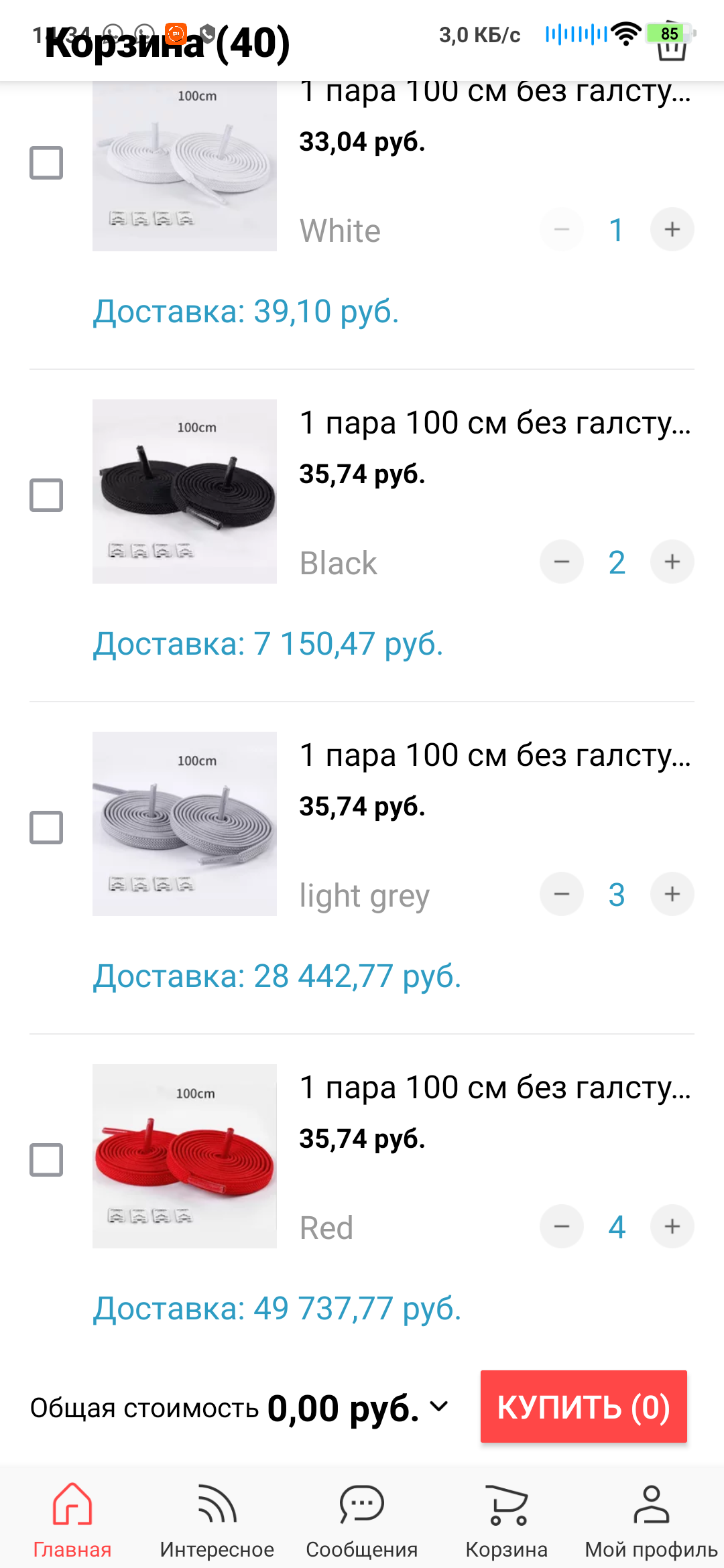 upd. хотя не, какая-то фигня. Сначала цена за доставку 39 рублей, если добавить еще одни шнурки - 113, а если потом вернуть на одну пару - 83.