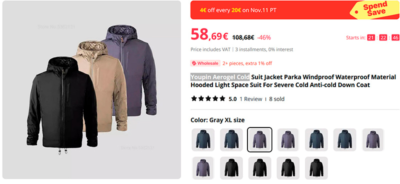 Куртка парка от дочки Xiaomi - Youpin Aerogel Cold. Имеет тонкий слой аэрогеля - материала крайне низкой теплопроводности, что означает, что куртка должна быть очень теплая. Разные размеры, три варианта цветов.