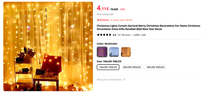 Потихоньку готовимся к Рождеству и Новому году - одна из самых продаваемых на Ali световых гирлянд с пультом управления. Разные цвета, три размера.