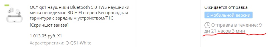 У меня сейчас такая плашка на одном из заказов: Will be shipped within: 44 days 21 hours 46 minutes 😒