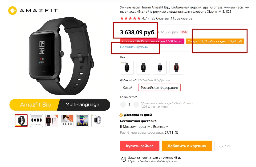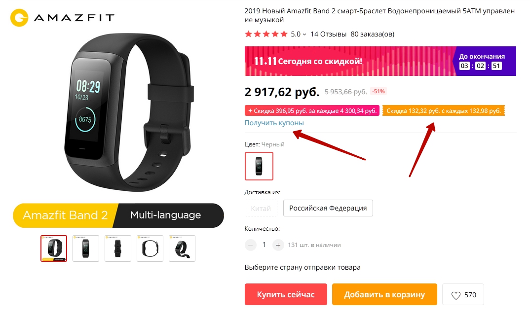 1. Добавить в корзину и взять купон на скидку в 131р. на странице товара