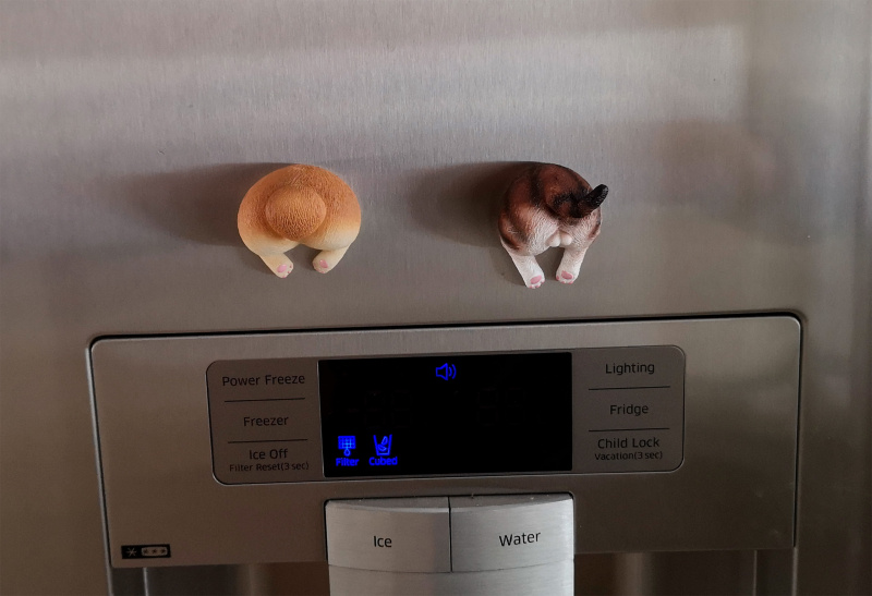И тут же вместе с жопками были изгнаны из кухни, потому что жена не любит магнитики на холодильнике.