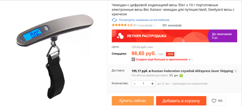Вот такой безмен для взвешивания чемодана нужен всем, кто летает на самолете. Еще и реально дешево, они обычно по 400-500 рублей. Я давно похожим пользуюсь, очень выручает.