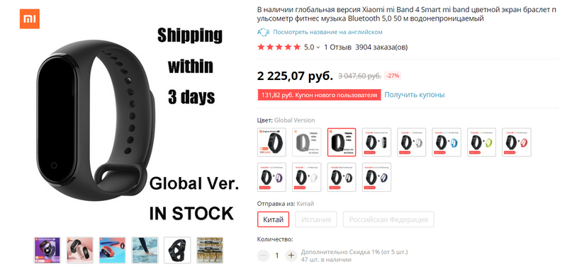 На новенький фитнес-браслет Mi Band 4 - 15% скидка - я его несколько дней назад за 2250 покупал.