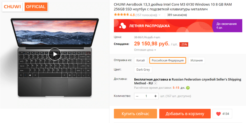 Upd: Chuwi Airbook подешевел. Поставка с российского склада. На 4PDA его хвалят. Закажу себе, интересно поизучать.