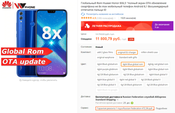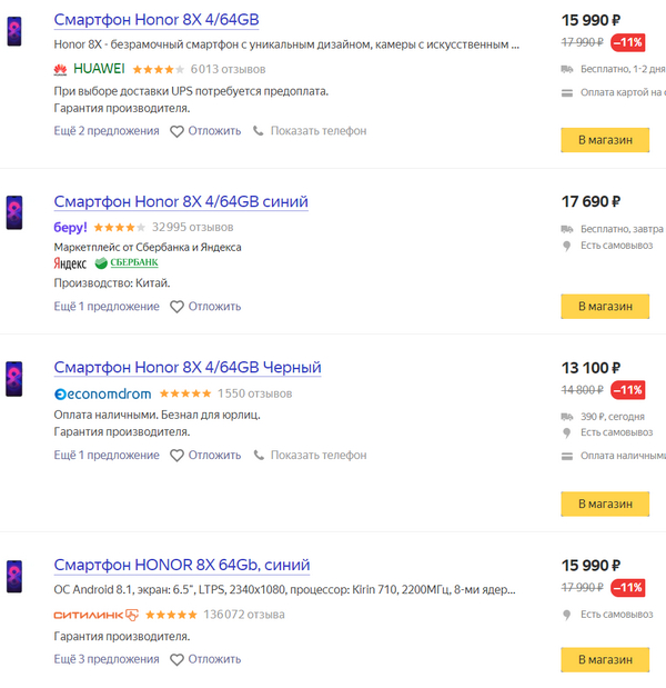 Ну и Honor 8X 6/64 (мой обзор) за 11800 рублей - вроде вполне неплохая скидка.
