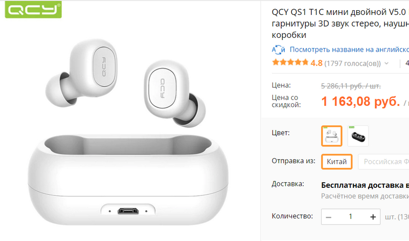 На бюджетные разделенные наушники QCY QS1 (я о них писал) - 15% скидка. Они и так-то дешевые, но тем не менее. А наушники очень даже неплохие.