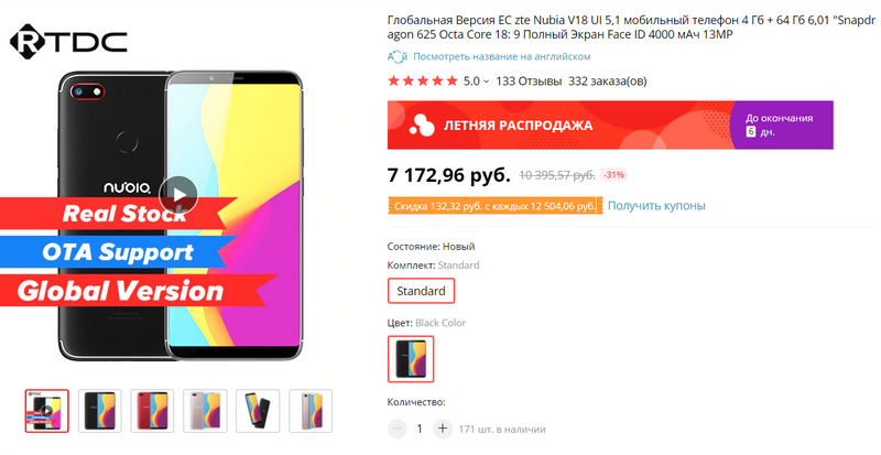 Смартфон ZTE Nubia V18 с реально хорошей скидкой.