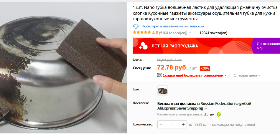 По поводу нано-губки. У нее меламиновая основа с абразивным наружным слоем. Здесь по ссылке продавец об этом не пишет, но у других прямо написано, например "5 шт./1 шт. 100*70*25 мм высокой плотности нано-наждак Волшебная меламиновая губка для очистки домашней посуды кухонная губка удаляющая ржавчину RUR 5Z".