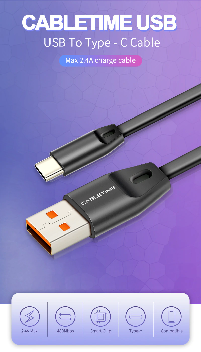 2 метровых USB - TypeC кабеля с быстрой зарядкой за $0.82