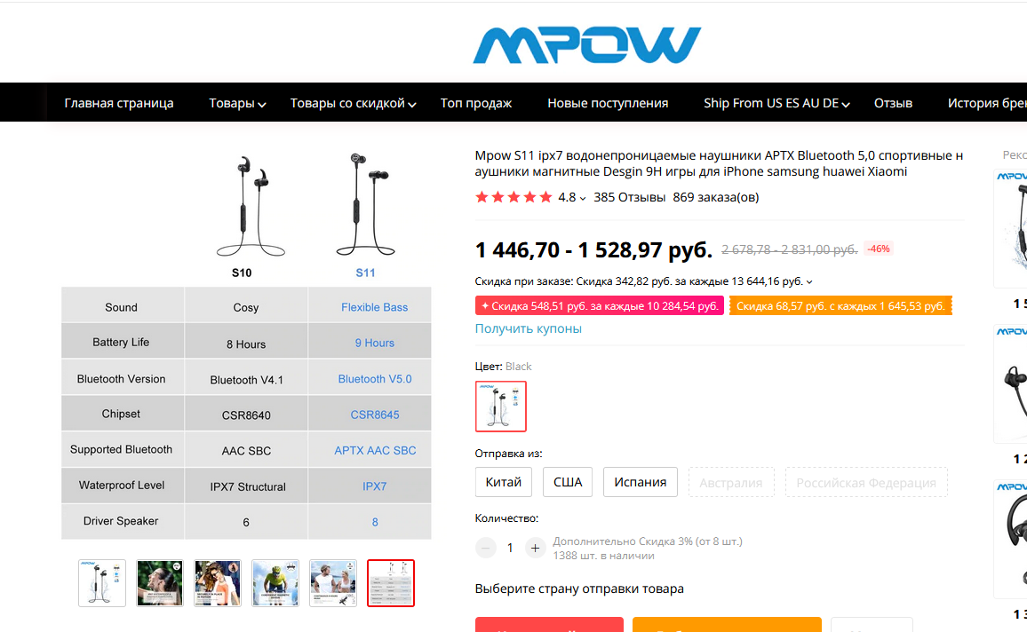 Заказал их еще раз в QCY Store, только цвет выбрал синий, чтоб не путаться. Приехали нормальные наушники, как у Алекса в обзоре, с кнопками квадратными, значком APT-X и.т.п. Только одна беда - не включались. Пожаловался продавцу, он выслал новые, которые тоже не включились. Убедить QCY Store выслать мне третью пару было сложнее, заняло месяц переписок и тупняка. В итоге магазин сообщил, что видимо с синими беда и предложил черные. Черные приехали точь в точь как в первый раз - в поганой коробке, с круглыми кнопками и без APT-X. Хотя бы включились и звук пристойный. Вообщем, плюнул я на этот QCY, ну их... Увидел сегодняшний обзор, заказал MPOW S11.