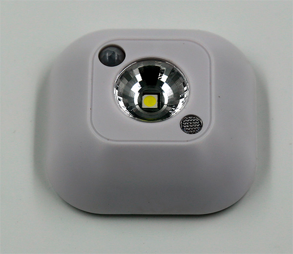 Вот один модуль. Он имеет датчик движения и датчик освещения. Благодаря датчику освещения, включается только когда реально темно. Датчик движения срабатывает на расстоянии пары метров и реагирует на движение в диапазоне угла в 120 градусов. Срабатывает очень четко. Яркая лампа загорается на 20 секунд, потом гаснет.