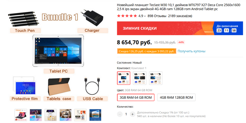 Teclast M30 в полной комплектации с клавиатурой и 128 Гб на борту с купонами выйдет меньше 10 тыс